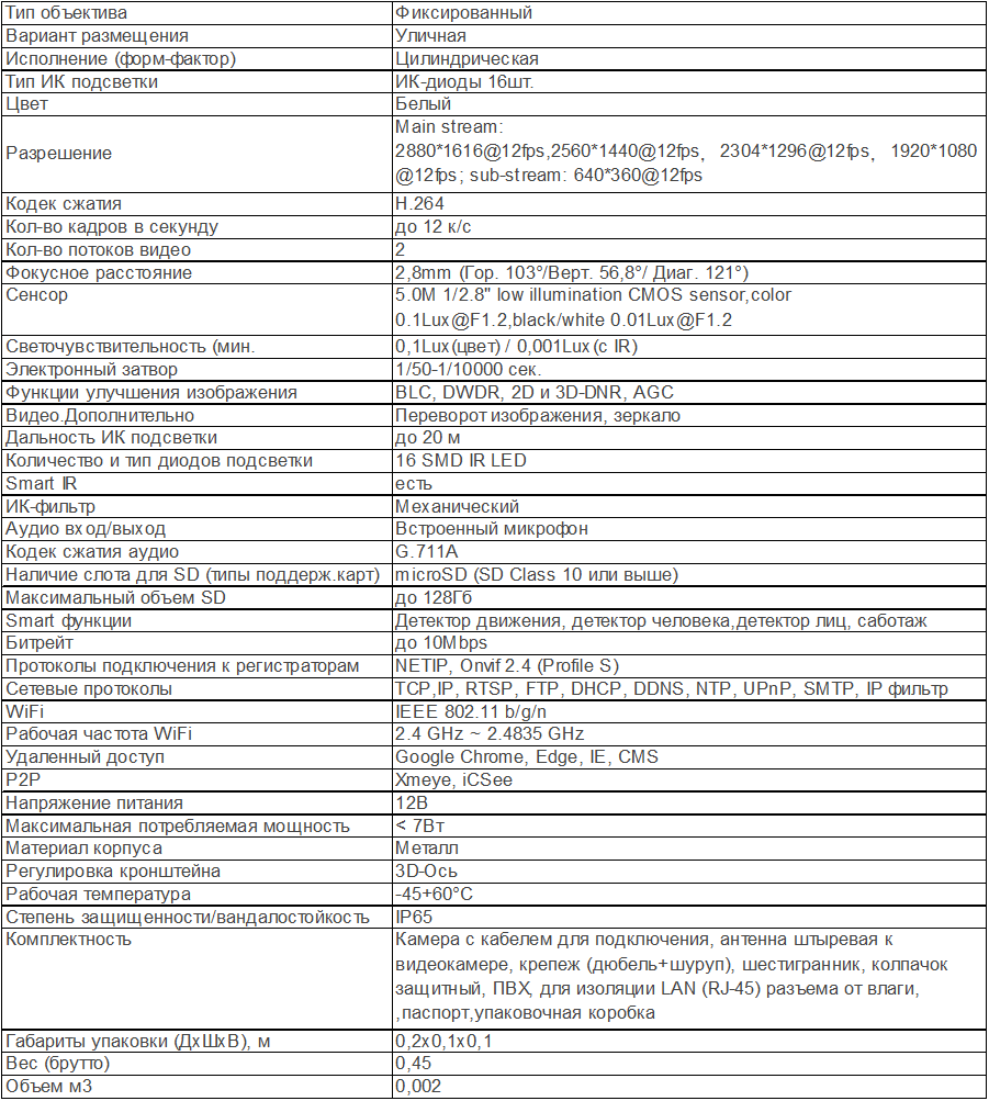 Уличная 5 Мр WiFi видеокамера WMi IVG-G5-WPNG , микрофон, IR,булет, 2592х1944 TVL, микро SD карта. Ик 20м 90град.